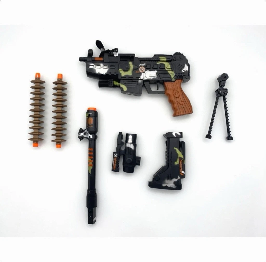 The set includes multiple tactical accessories to create the ultimate combat mission experience for children who love action toys and roleplay adventures. With its detailed military-style design, detachable accessories, and engaging electronic effects, this toy gun makes a fantastic gift for birthdays, Christmas, and special occasions.