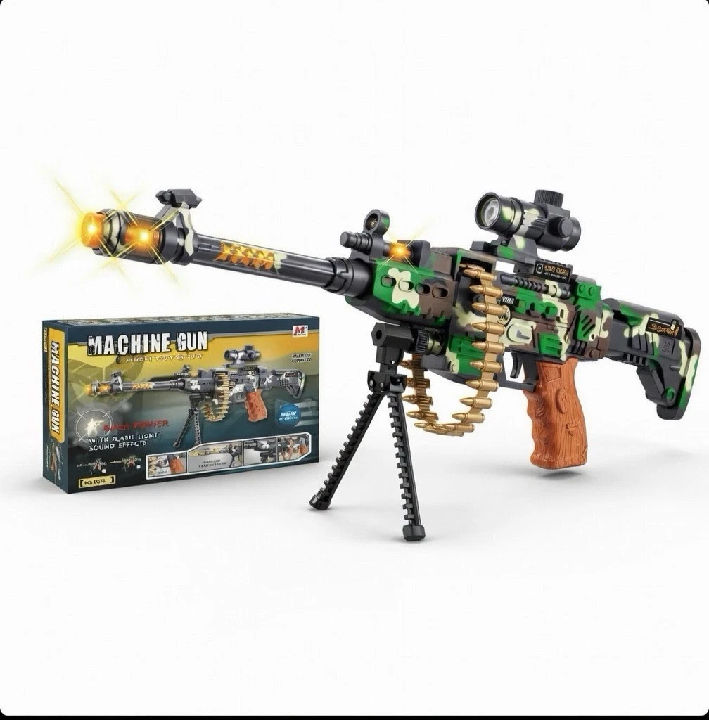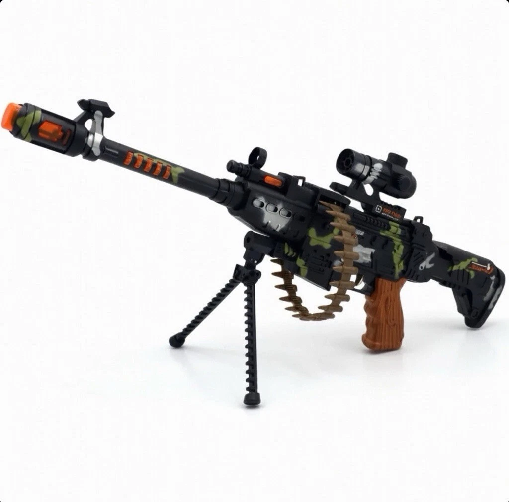Bring action-packed adventure to playtime with this Kids Electric Toy Machine Gun Tactical Combat Set, now available at AK World Mart UK. Designed for exciting pretend military and roleplay games, this impressive 25-inch electric toy machine gun features realistic sound effects, flashing lights, and vibration action for immersive play.