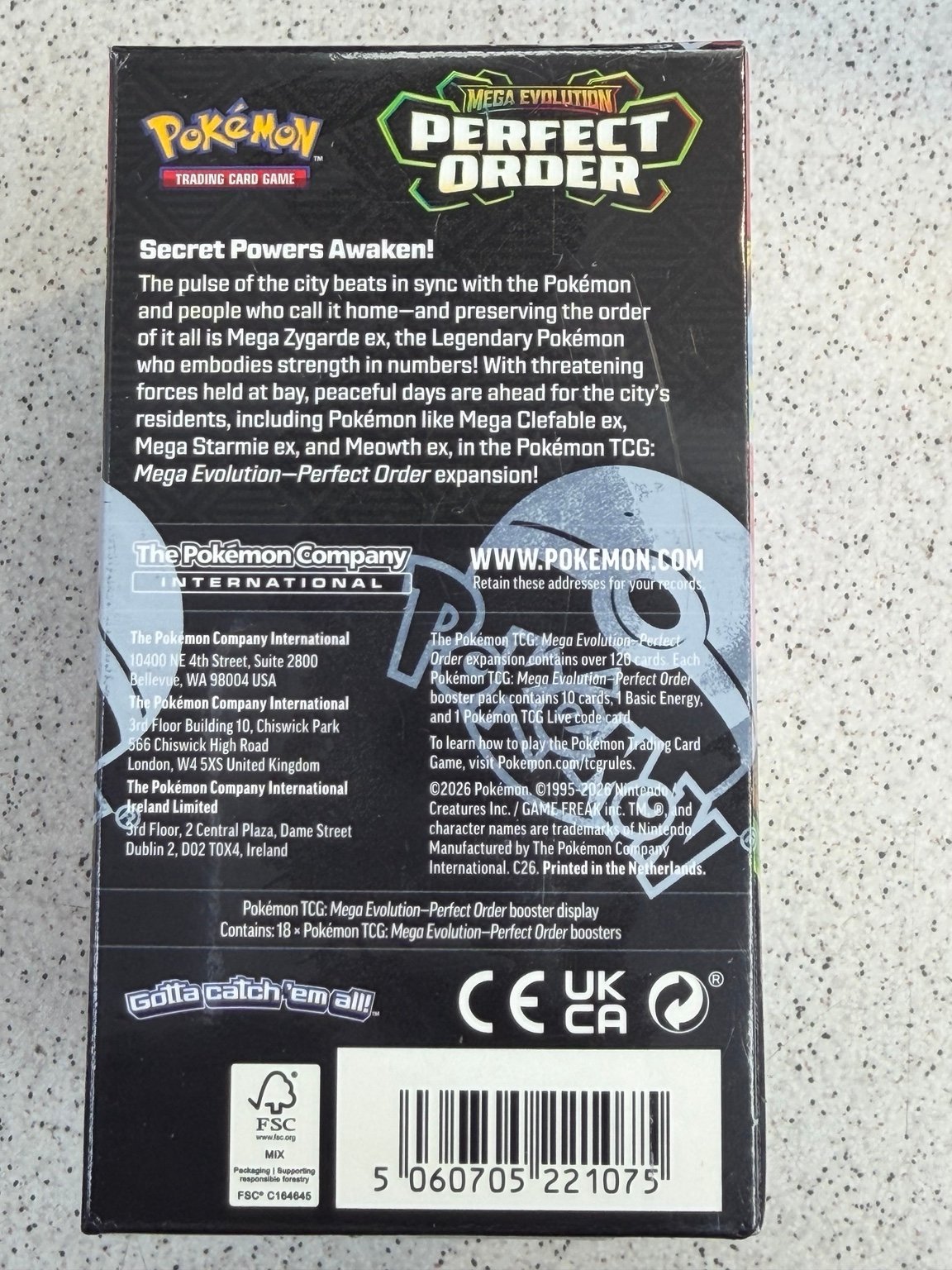 Enjoy the excitement of collecting and battling with the Pokémon Trading Card Game Booster Pack – Mega Evolution Perfect Order, now available at AK World Mart. Each sealed booster pack contains 10 additional game cards, giving you the chance to discover powerful Pokémon, rare cards, and exciting new additions to your collection.